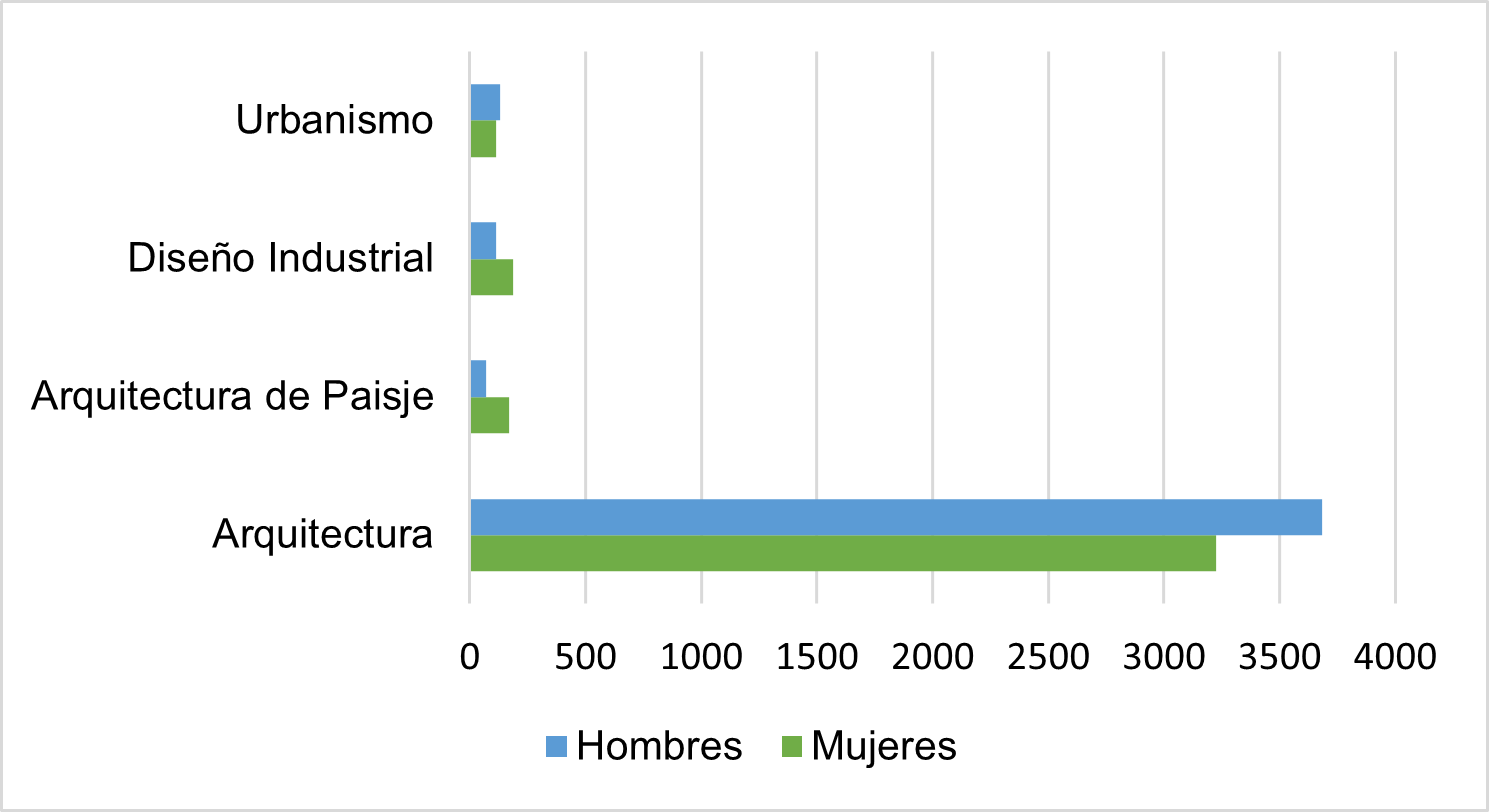 Gráfica 1. Estudiantes inscritos en la Facultad de Arquitectura (información por licenciatura desagregada por sexo)