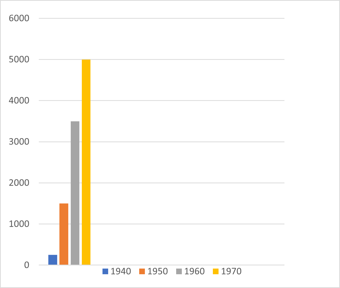 Gráfica 1. Inversiones en millones de pesos en el sector industrial de Querétaro entre 1940 y 1970