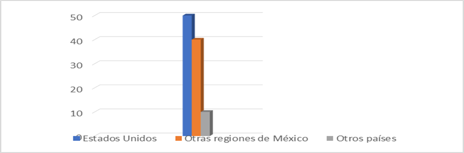 Lo que se muestra en la gráfica es un aumento de más de 20 veces en inversiones industriales en casi cuatro décadas: de 100 millones en la década de 1940, 1,500 en la década de 1950, 3,500 millones en la década de 1960 y casi 5,000 millones para finales de la década de 1970. Lo anterior ayuda a entender la importancia de las inversiones en el sector secundario de la economía en la ciudad y su área metropolitana durante la ISI. Ahora bien, ¿de dónde provinieron esas inversiones? Es decir, ¿cuál fue el origen de esos capitales? Las inversiones en el sector industrial entre 1940 y 1980 provinieron principalmente de los Estados Unidos, con un 50 %; de otras regiones de México -como se ha señalado-: Distrito Federal, Estado de México y Monterrey, con un 40 %, principalmente, y en un menor porcentaje de naciones como Suiza, Canadá, Gran Bretaña, Francia, Alemania y Japón, que en su conjunto fue de un 10 % de inversión (ver Gráfica 2).