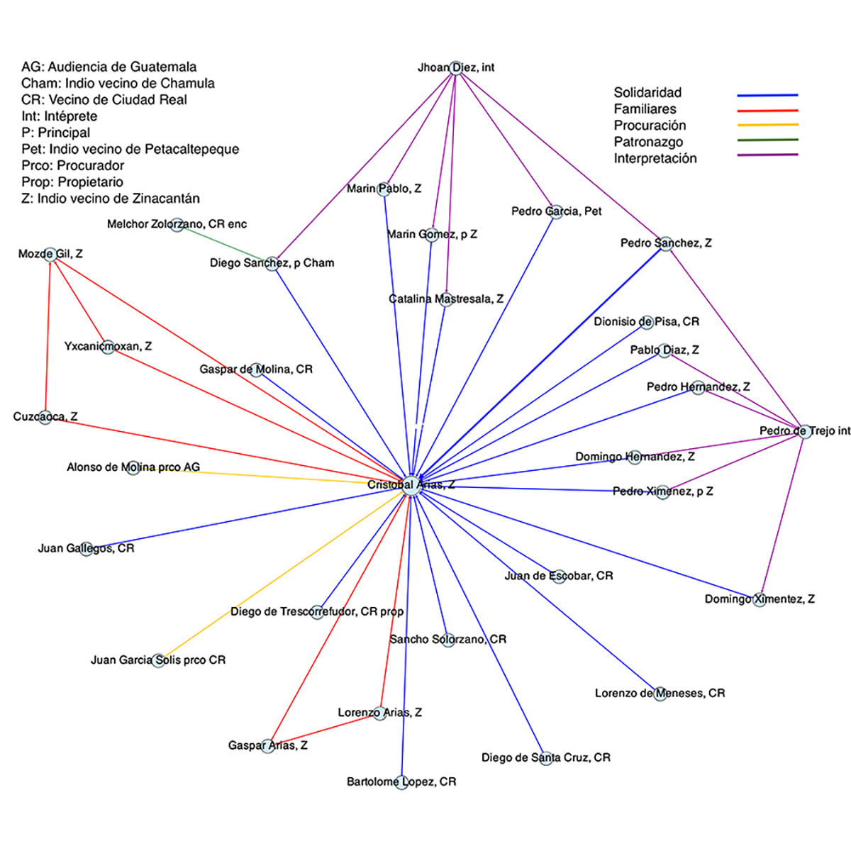 Para finales del siglo XVI la familia Arias contaba con la solidaridad, tanto de algunos indios principales del pueblo de Zinacantán y sus pueblos sujetos, como de vecinos españoles con cargos de república y con quienes Cristóbal Arias supuestamente había ido a la “conquista” de Pochutla y el Lacandón. La familia Arias esgrimió dos argumentos para demostrar al rey sus servicios. Por un lado, su participación en la “pacificación” de los lacandones que no se habían subordinado aún a la autoridad real. Por otro, su importante papel en la comunicación política, es decir como escribanos, intérpretes, mediadores y guerreros, tanto en los procesos de conquista y pacificación, como al interior de la república de indios.