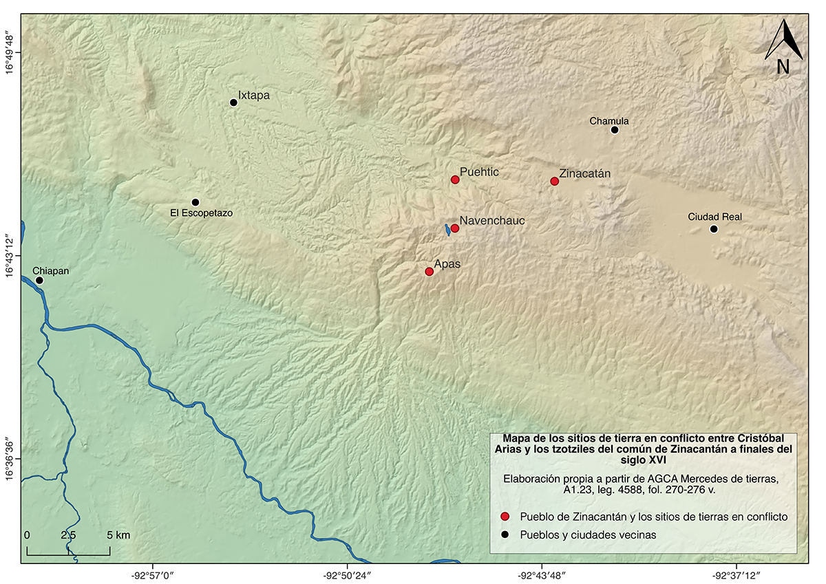 El litigio de tierras entre el alcalde Cristóbal Arias y los mayas tzotziles del “común” de Zinacantán, así como el título que resultó de este pleito, formó parte del proceso de reconfiguración territorial acaecido durante la segunda mitad del siglo XVI y principios del siglo XVII en la Alcaldía Mayor de Chiapa. En dicho proceso fue imprescindible la instauración de las repúblicas de indios, que dotaron de herramientas políticas a los pueblos recién congregados y reducidos para la defensa de sus tierras. A ello también contribuyó la puesta en marcha de las leyes de composición por parte del juez Juan de Barba Coronado en Chiapa, que resultó en la apropiación de tierras por parte de individuos indígenas y europeos.