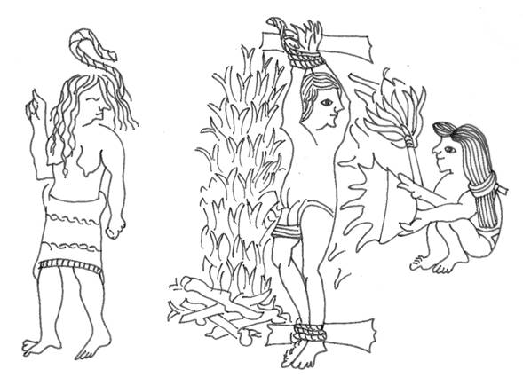 En el caso de que los adúlteros hubieran matado al engañado existía un castigo específico. El varón moría asado vivo, y mientras se iba asando, lo iban rociando con agua y sal hasta que allí perecía; y a la mujer la ahorcaban (figura 4).46