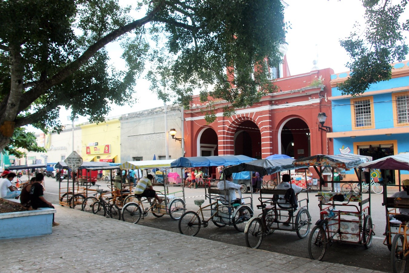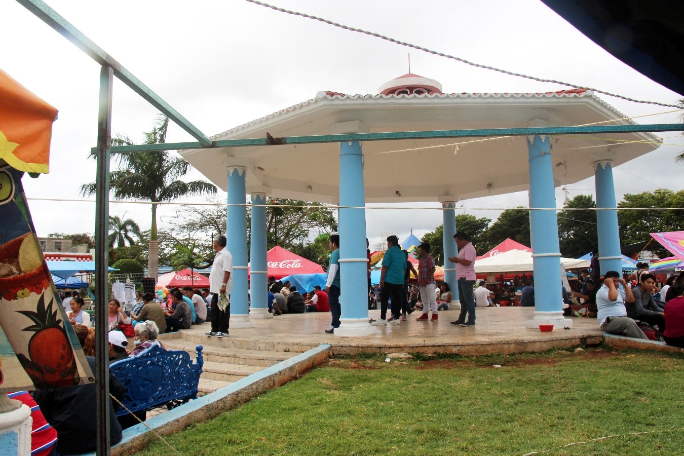 Desde las primeras horas del día en la plaza central de Hunucmá se nota la afluencia de gente que va y viene. Es un espacio público urbanísticamente nodal y en sus alrededores se concentran los principales servicios de la ciudad.