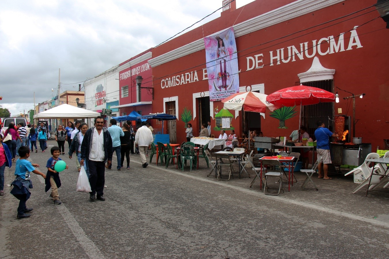 El uso de los espacios públicos abiertos durante las fiestas del santo patrono del pueblo es intensivo y altamente simbólico. Por motivos históricos, que no viene al caso mencionar, la fiesta religiosa inicia a las 6:00 horas del segundo domingo del mes de enero en el poblado cercano de Tetiz, con una procesión hacia Hunucmá. La Virgen viaja de la Asunción de Tetiz en una vitrina y es recibida en la parroquia de San Francisco con júbilo popular mediante una misa ofrecida por cinco sacerdotes. Es tanta la multitud que acude que la misa se ofrece en la calle para que pueda ser escuchada por todos los feligreses.
