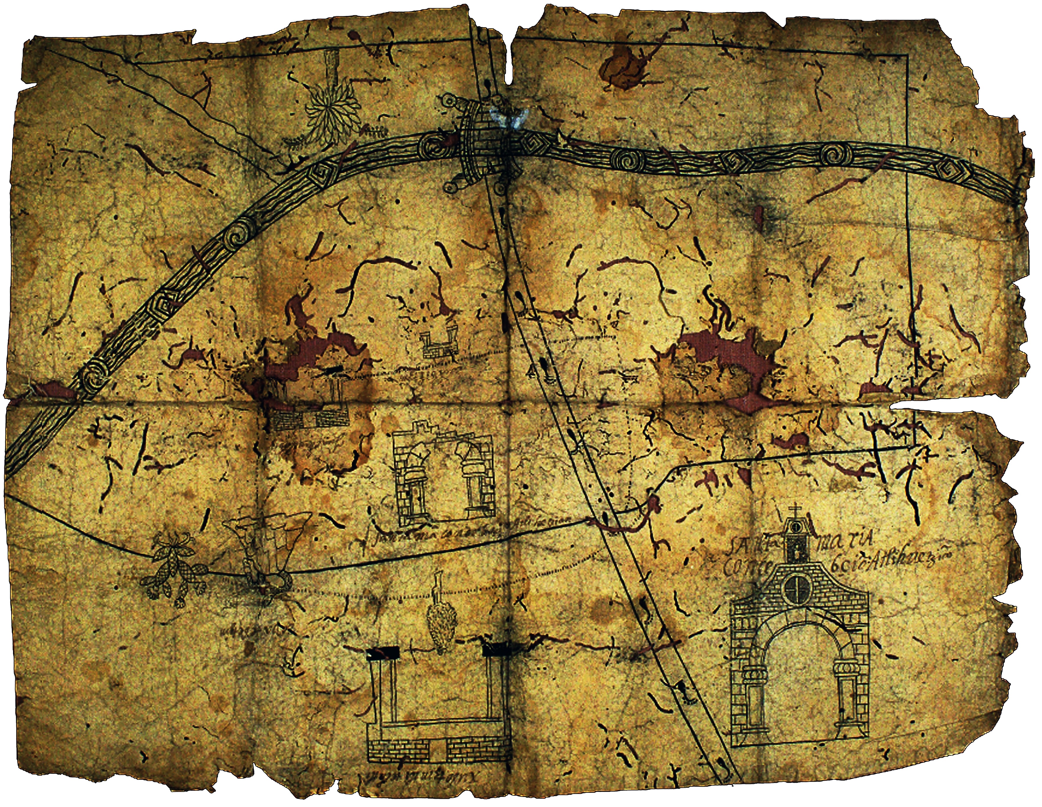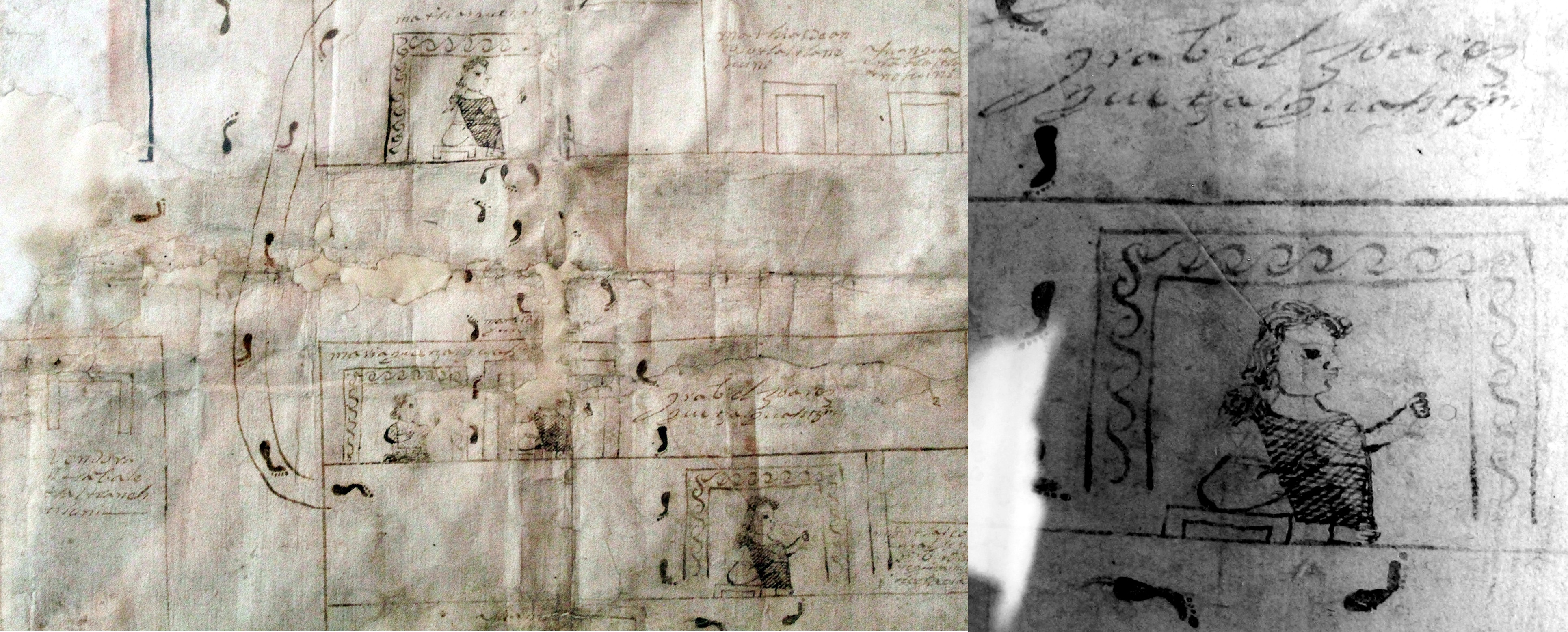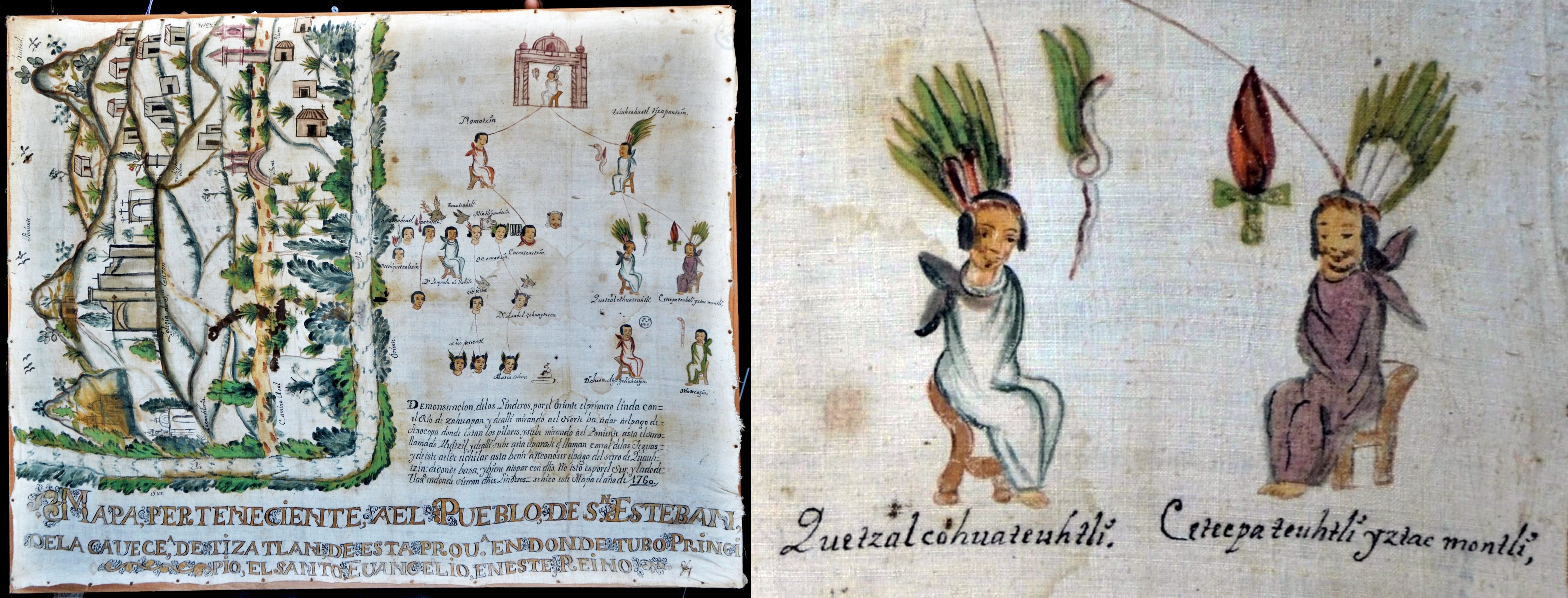 Imágenes 1 y 2. Mapa perteneciente a el Pueblo de San Esteban, de la cabecera de Tizatlán de esta provincia en donde tuvo principio el Santo Evangelio en este Reino, 1760.