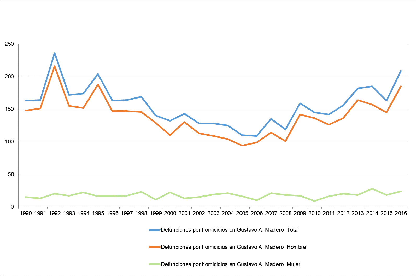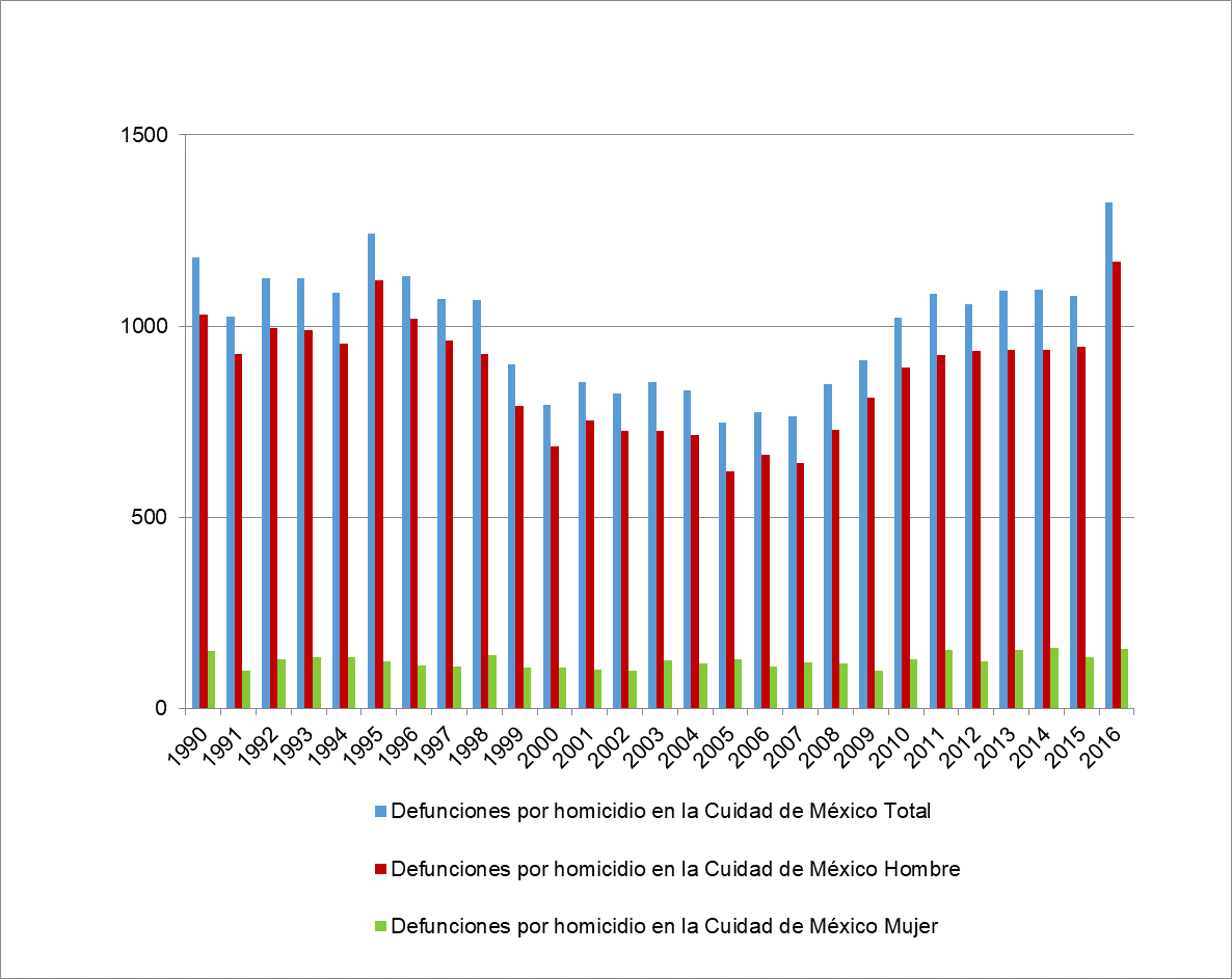 Gráfico 3. Defunciones por homicidio en la Ciudad de México