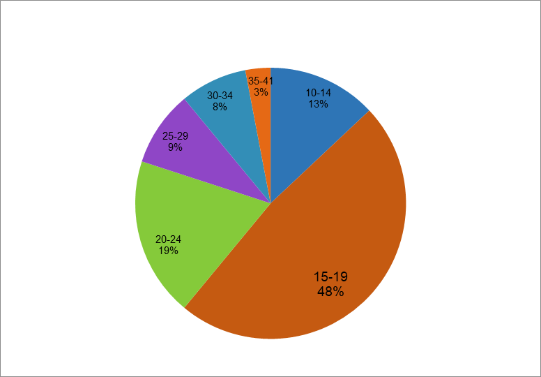 Con respecto al cuestionario aplicado con fines exploratorios sobre una muestra de 121 personas jóvenes,9 se obtuvieron los siguientes resultados. La edad media de los entrevistados fue de 20.05 años, donde el más pequeño tenía 11 años y el más grande 41 años,10 por lo que a pesar de haber incorporado algunas personas que no alcanzan o que rebasan la edad oficial para ser considerados como tales, el grueso de los encuestados (76 %) sí se ubica en este rango.