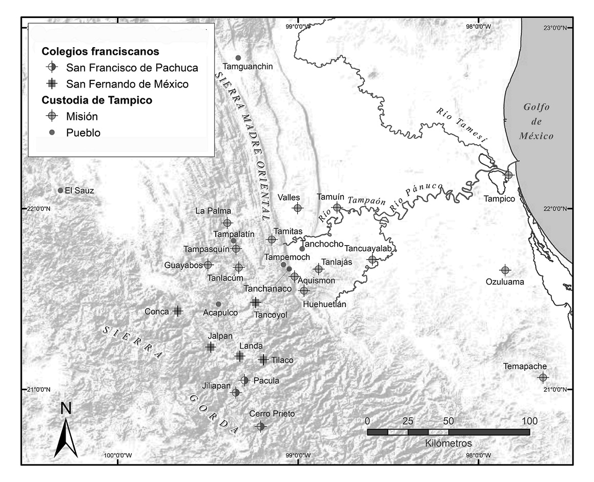 11 Torquemada dice que en las primeras décadas del siglo XVII la custodia de San Salvador de Tampico llegó a tener 11 o 12 misiones. Fray Juan de Torquemada, Monarquía indiana, vol. VI (México: Universidad Nacional Autónoma de México, Instituto de Investigaciones Históricas, 1975-1983), 71. Hacia fines de la centuria se seguía señalando la existencia de 12 establecimientos misionales. Fray Agustín de Vetancurt, Teatro mexicano. Descripción breve de los sucesos ejemplares, históricos y religiosos del Nuevo Mundo de las Indias. Crónica de la Provincia del Santo Evangelio de México, Menologio franciscano, segunda edición, Facsimilar (México: Porrúa, 1982).