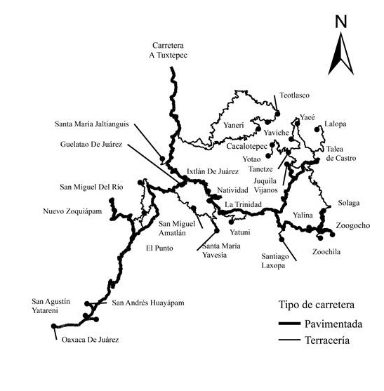 Entre 1940 y 1950, comunidades vecinas a Natividad como Xiacuí, La Trinidad y pueblos del sector Zoogocho,8 prolongan el camino tipo brecha al paraje conocido como “Las Maravillas” –y se acercan a El Rincón–. La prolongación beneficia a las plazas cercanas como las de Zoogocho (jueves), San Pedro Cajonos (domingo), Villa Alta (lunes) y Yalálag (martes). Sin embargo, a estas plazas no asisten los vecinos de las comunidades de El Rincón, por un lado, predomina una variante dialectal del zapoteco que no es comprensible por los zapotecos de El Rincón, por otro, no están especializados en los productos que comercializan las comunidades de El Rincón.