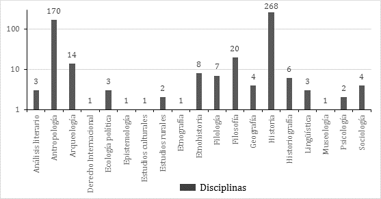 Como es notorio, la revista ha publicado, hasta 2015, fundamentalmente trabajos de historia, historiografía y antropología (268, 6 y 170 artículos respectivamente), seguidos por trabajos de filosofía (20), arqueología (14), etnohistoria (8), sociología (4), geografía (4), o filología (7) y análisis literario (3) que hacen un total de sesenta artículos, mientras que el resto de las disciplinas está representado por entre uno o dos artículos a lo largo del periodo. El perfil de la revista es, pues, multidisciplinario con énfasis en la historia, la antropología y, en menor medida, otras disciplinas sociales y humanas. Evidentemente esto es reflejo del material que se recibe en la redacción y que termina con éxito el proceso de evaluación entre pares. Un análisis más detallado muy probablemente arroje también la confirmación de que no solamente se trata de una revista multidisciplinaria y que integra en sus páginas un abanico diverso de enfoques disciplinares y temas, sino también que existen trabajos que en sí mismos son interdisciplinares o que hay números de la revista en el que se logró un diálogo comparativo entre temas o metodologías de manera equilibrada.