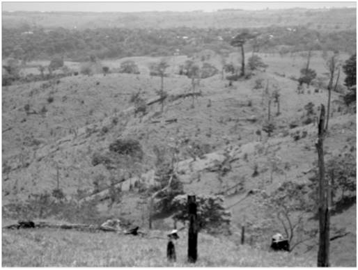 En la Sierra de Santa Marta, a finales de los cuarenta, la mayor parte de la superficie estaba cubierta por una densa selva lluviosa, exuberante y –según relatos de sus habitantes– peligrosa e intimidante para quien se aventurara a sus entrañas. Para entonces la presencia de pastos era absolutamente minúscula, casi imperceptible. Así, para 1949, las superficies ocupadas con pastos en los municipios de Soteapan y Mecayapan eran respectivamente de 2.4 y 0.8 % en relación con la superficie total (Paré y otros 1993). En Pajapan –al sureste– era un poco distinto y para ese mismo año el porcentaje de la superficie ocupada por pastos era ya de 27.9 %. Hacia finales de esa década de 1940, el triunfo a escala nacional y regional del proyecto alemanista sobre las ideas cardenistas de cuño agrarista permitió la consolidación en el sur de Veracruz de un grupo ganadero de enorme fuerza política y económica, irradiada desde los centros de poder regional como Acayucan y Coatzacoalcos y canalizada a través de la Unión Regional Ganadera y sus filiales locales (Velázquez 2000, 113-114). Así, en Pajapan, una comunidad agraria nahua que a diferencia de sus vecinos popolucas de Soteapan había podido evitar durante el Porfiriato la pérdida de sus tierras comunales (véase Velázquez 2006, 2001), la expansión de la ganadería comenzaba a expresarse en una lucha de poder entre diferentes actores en un ámbito circunscrito no meramente a lo local entre campesinos, elites económicas y políticas y organizaciones ganaderas (véase Buckles y Chevalier 1993). En este municipio, pronto hubo campesinos indígenas que se apropiaron rápidamente de la ganadería como una forma viable de ganarse la vida aun a costa de los recursos forestales que desaparecían a su paso. La presencia de la ganadería impregnó con su sello la política local y los conflictos de interés en las contiendas políticas municipales tuvieron en su centro la posibilidad de seguir extendiendo las superficies de pastos y un mayor número de reses.