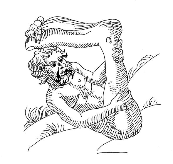 FIGURA 1. Ser monstruoso de un pie y dos brazos y de abundante pelo