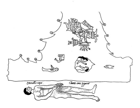 Fuente: Fray Diego Durán, Historia de las Indias, tomo I, lám. 48. Dibujo de Jaime Echeverría.