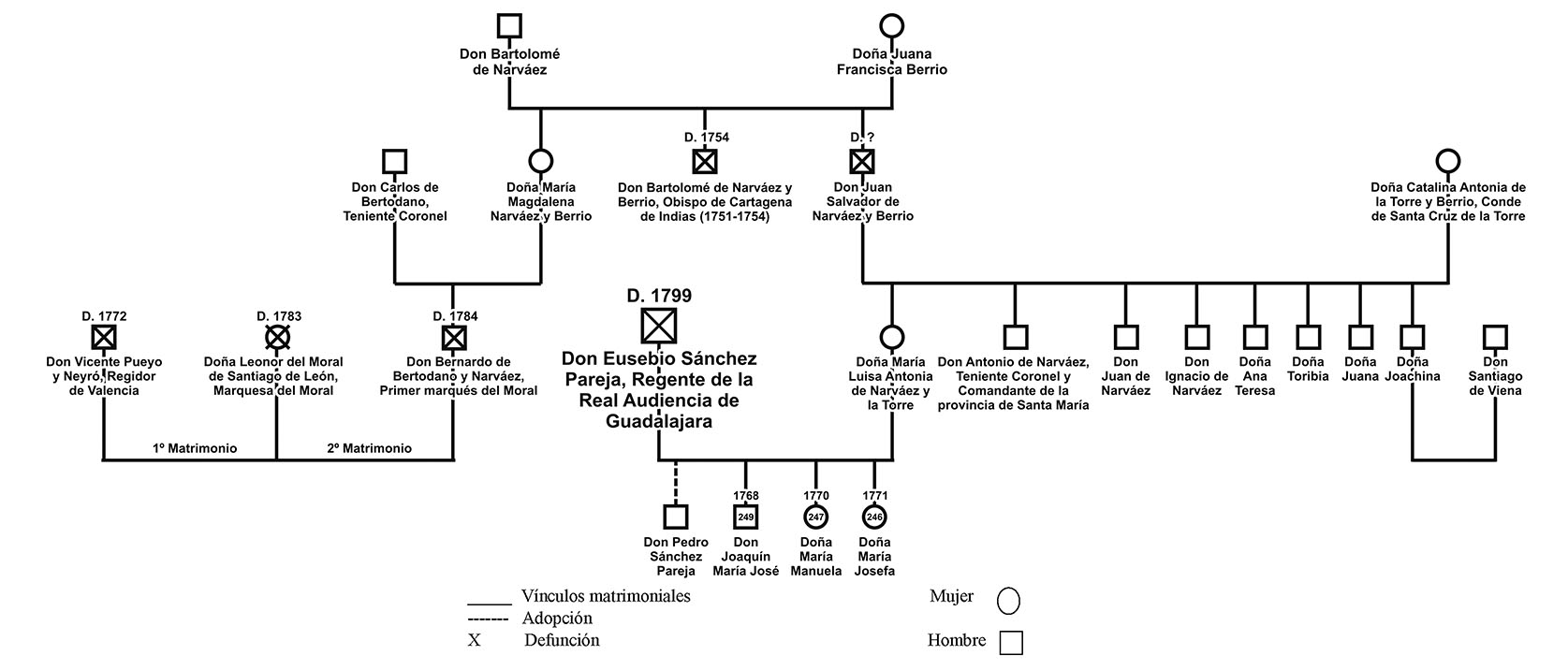 FIGURA 2. Genealogía de María Luisa Antonia de Narváez y la Torre (esposa de Sánchez Pareja)