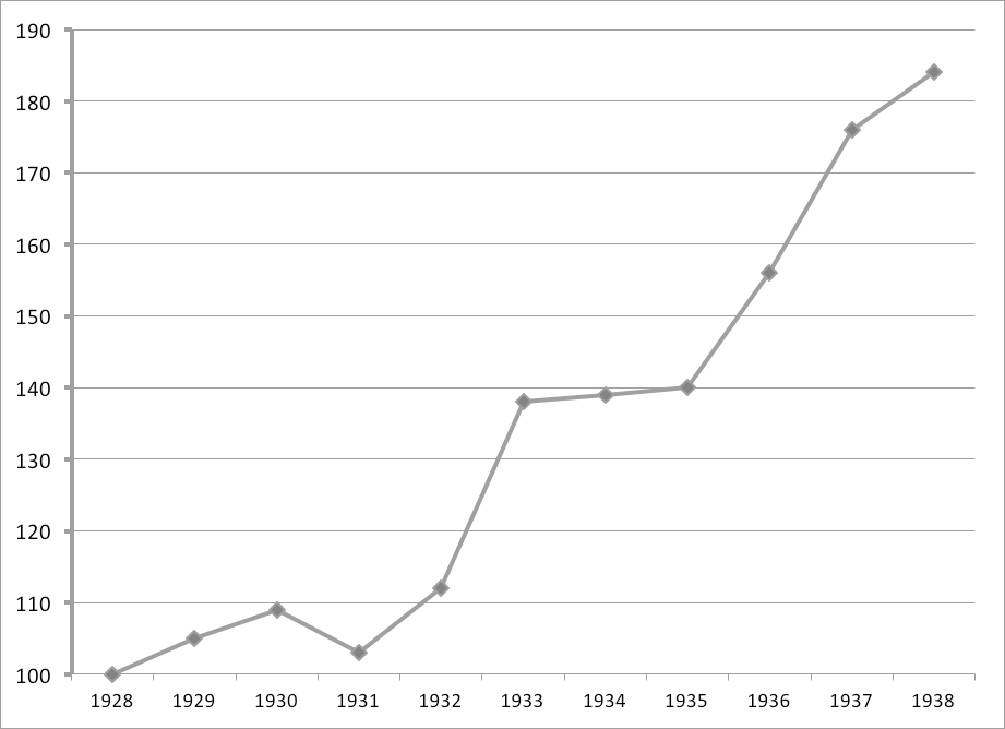 Fuente: Elaboración propia a partir de Estadística Chilena (12) (diciembre 1938). *marzo 1928=100.
