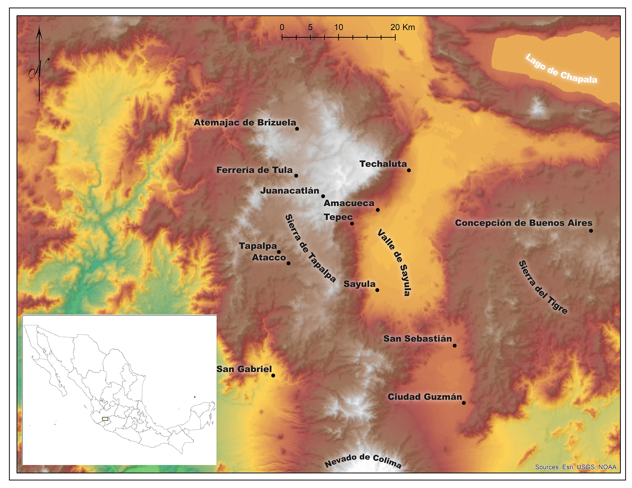 7 Archivo Histórico de Jalisco (AHJ en adelante) Fomento-Explotación forestal, caja F-19, exp. 14203; Archivo General Agrario (AGA en adelante), Atemajac de Brizuela, Dotación, exp. 23/1768, (3), fs. 93-104; De la Peña 1987, 366-368; Valerio 2003, 232, y apéndice.