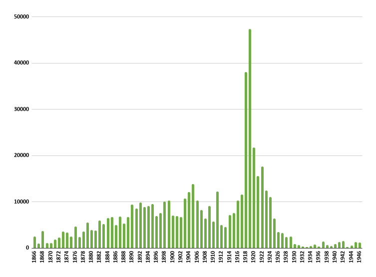 Fuente: Foreign Commerce and Navigation of the United States, 1866 to 1946.