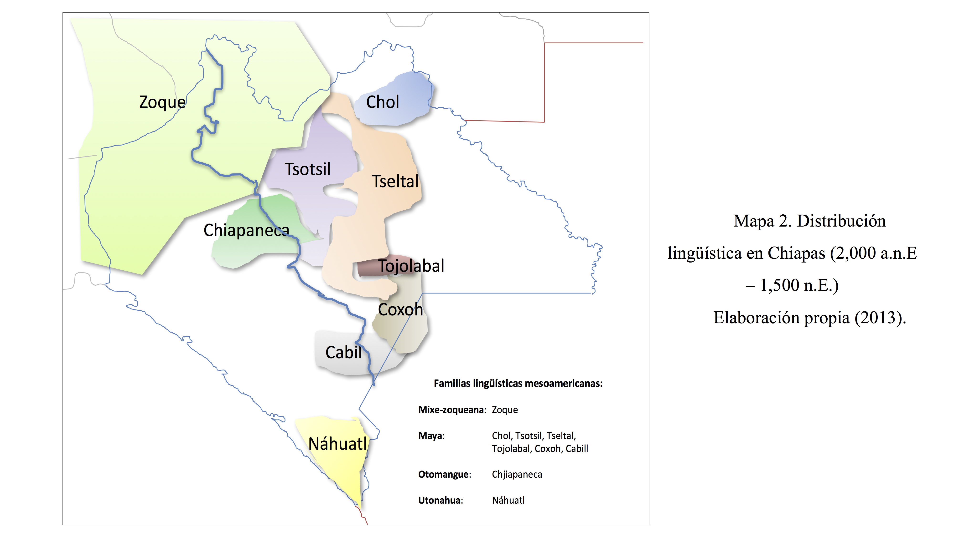 - Mapa 2. Distribución lingüística en Chiapas (2,000 a.n.E.-1,500 n.E)