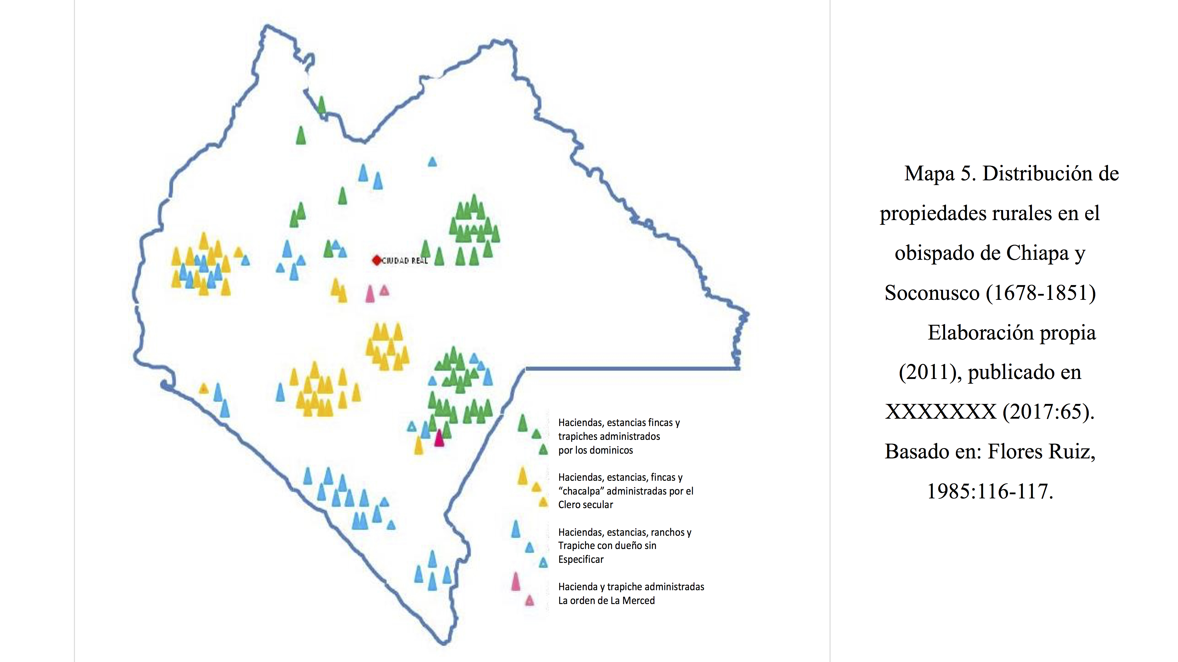 - Mapa 5. Distribución de propiedades rurales en el obispado de Chiapa y Soconusco