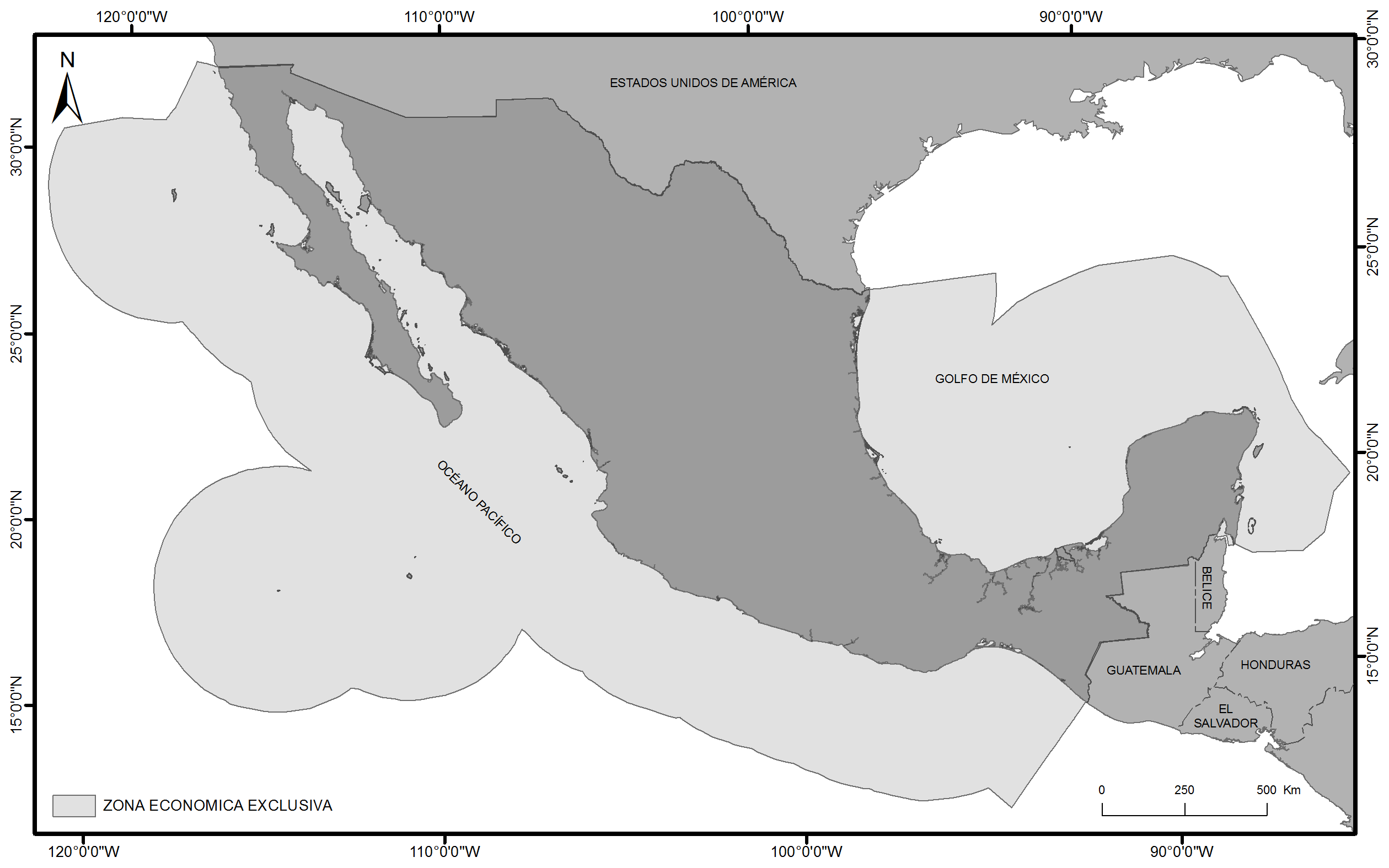 - Zona Económica Exclusiva de México. Fuente: CONABIO]